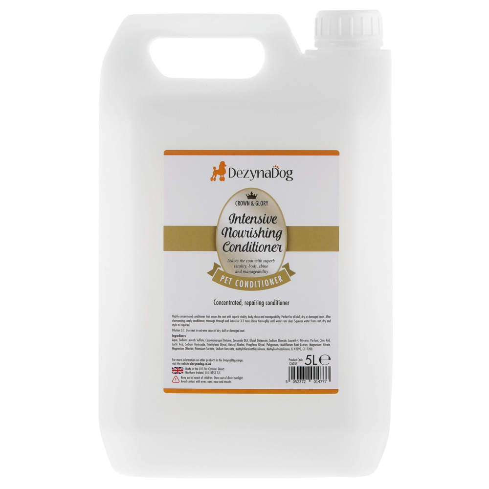Живильний кондиціонер Crown & Glory призначений для інтенсивного зволоження та живлення шерсті після миття. Завдяки комплексу біологічно активних речовин він сприяє поліпшенню якості шерсті, відновленню шерстного покриву. Засіб зволожує та живить шкіру, зміцнює кожну волосинку, надає життєвої сили та блиску.