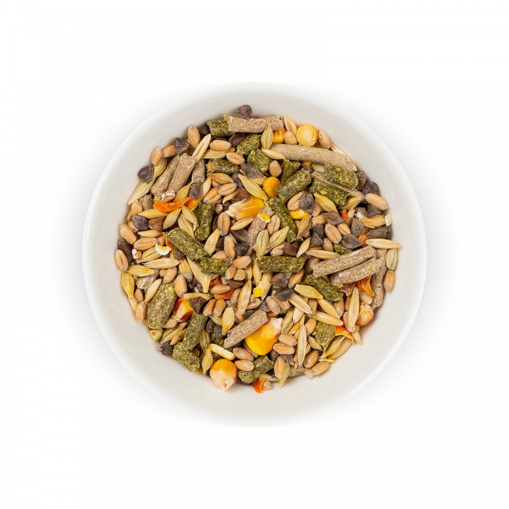 Дріжджові культури не тільки регулюють травлення, але й збагачують раціон вітамінами групи В. До складу корму входять зневоднені фрукти, які містять каротиноїди, що позитивно впливають на пігментацію шерсті, підвищують імунітет, покращують загальний стан здоров'я гризуна.