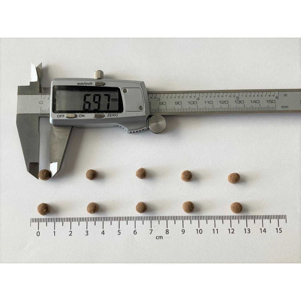 Аналітичний склад: сирий протеїн 39,0%, сирий жир 18,0%, сира клітковина 1,2%, сира зола 7,5%, вологість 10,0%, Омега-3 жирні кислоти 1,3%, Омега-6 жирні кислоти 2,0%, кальцій 1,2%, фосфор 1,0% , натрій 0,7%, магній 0,1%, EPA (20:5 n-3) 0,15%, DHA (22:6 n-3) 0,2%.