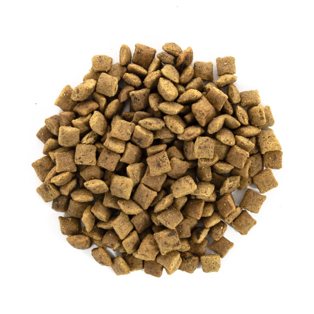 Склад: дегідратоване м’ясо курки (27 %), свіже м’ясо курки (26 %), жовтий горох (22 %), сушені яблука (9%), курячий жир (консервований токоферолами, 4 %), пивні дріжджі (3%), насіння та полова псиліуму (2 %), лососеве масло (2 %), гідролізована куряча печінка (2%), насіння льону (1%), сушена собача кропива (0,5%), сушена ромашка (0,5%), мінерали, сушена обліпиха (0,3%), сушена журавлина (0,2%), фруктоолігосахариди (0,015 %), мананолігосахариди (0,015 %), юка Шидігера (0,008 %), Lactobacillus acidophilus HA - 122 інактивовані (15x109 клітин/кг).