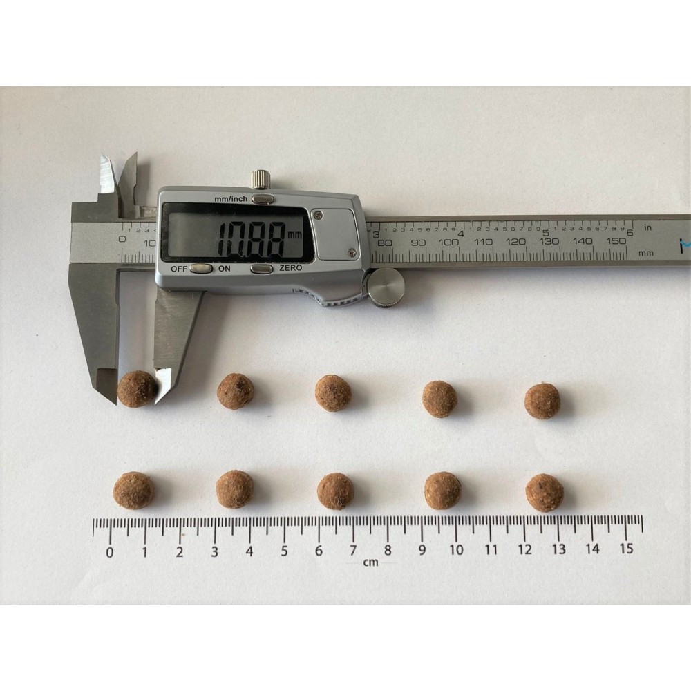 Аналітичний склад: сирий білок 33,0%, сирий жир 12,0%, сира клітковина 3,0%, сира зола 8,5%, вологість 10,0%, Омега-3 жирні кислоти 0,6%, Омега-6 жирні кислоти 1,7%, кальцій 0,8%, фосфор 0,7% , натрій 1,1%, магній 0,04%, EPA (20:5 n-3) 0,15%, DHA (22:6 n-3) 0,2%.