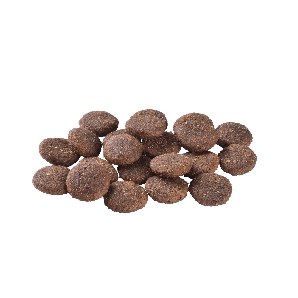 Аналітичний склад: сирий протеїн 26,0%, сирий жир 14,0%, вологість 10,0%, сира зола 7,0%, сира клітковина 3,0%, кальцій 1,3%, фосфор 0,9%, натрій 0,4%, Омега-3 жирні кислоти 0,5%, Омега-6 жирні кислоти 1,7%, EПК (20:5 n-3) 0,05%, ДГК (22:6 n-3) 0,1%.