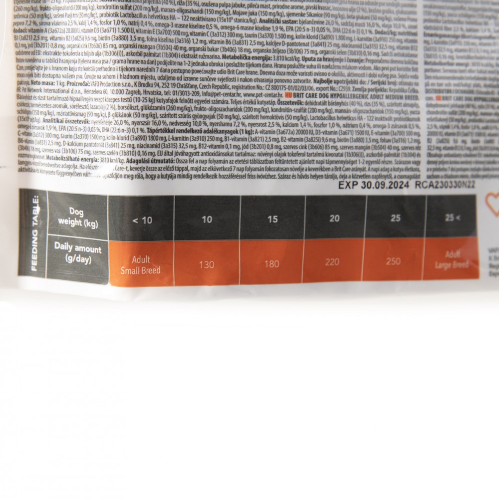 Гіпоалергенний корм суперпреміум класу з єдиним джерелом тваринного білка для профілактики алергії. Ідеально для дорослих собак середніх порід (10 – 25 кг) з нормальними потребами в енергії.