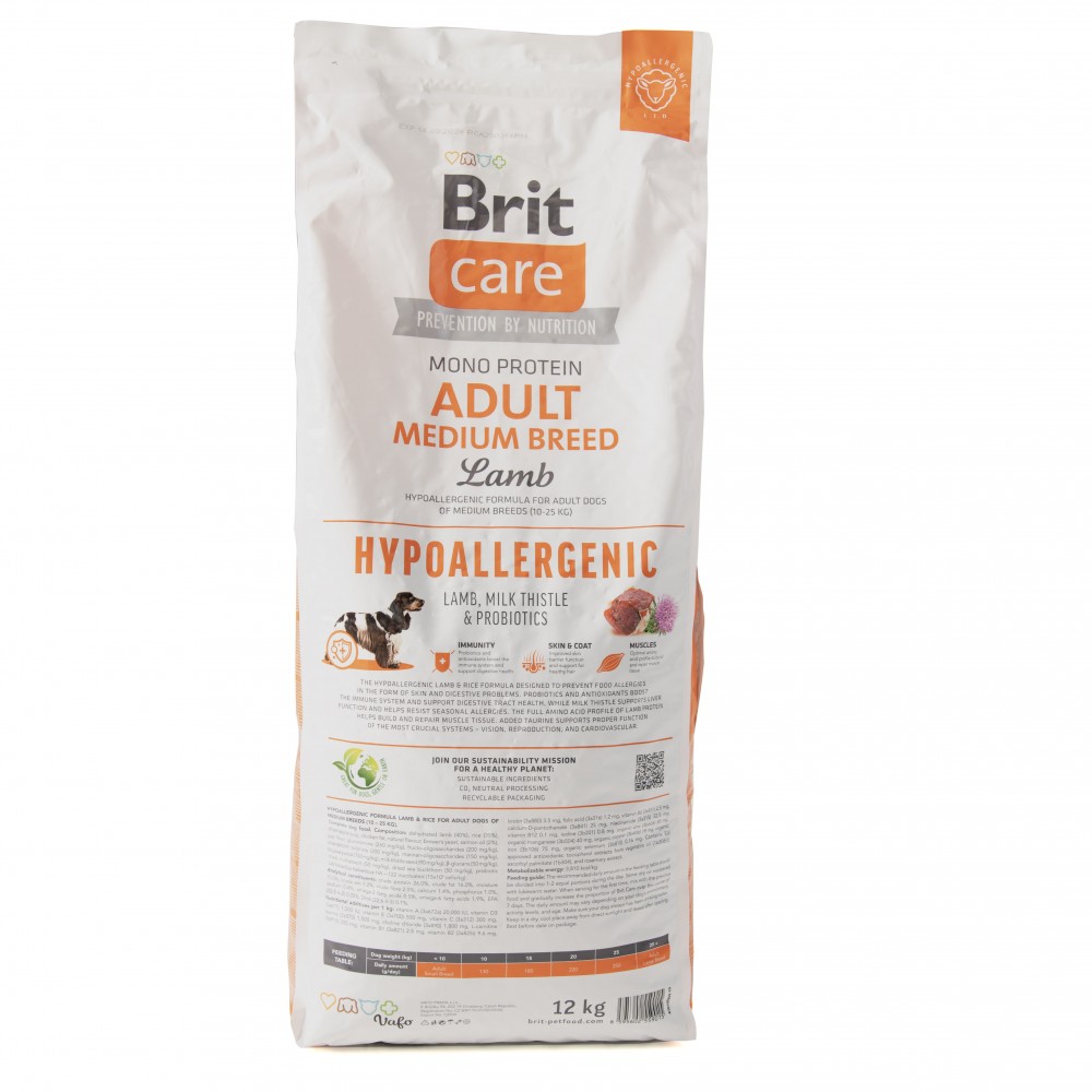 Гіпоалергенний корм суперпреміум класу з єдиним джерелом тваринного білка для профілактики алергії. Ідеально для дорослих собак середніх порід (10 – 25 кг) з нормальними потребами в енергії.