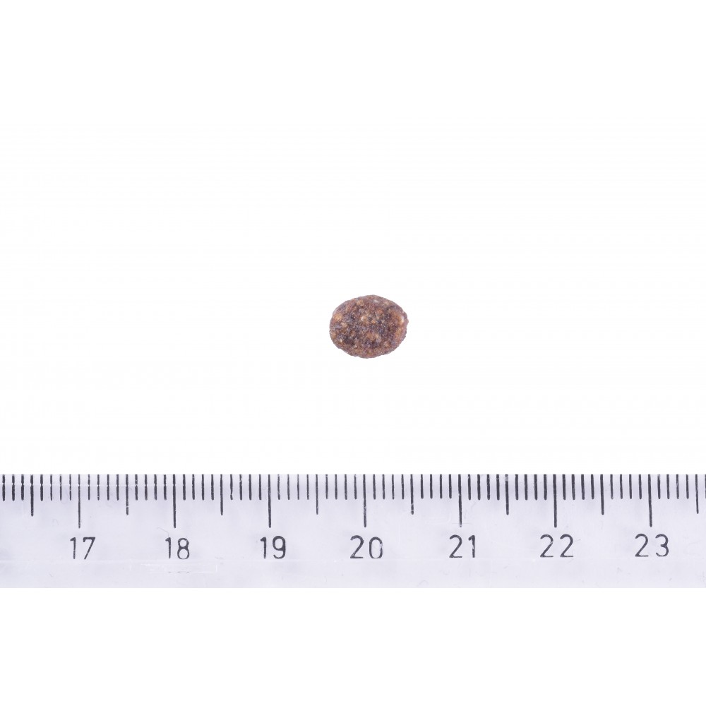 Аналітичний склад: сирий протеїн 28,0%, сирий жир 17,0%, вологість 10,0%, сира зола 7,0%, сира клітковина 2,5%, кальцій 1,5%, фосфор 1,1%, натрій 0,4%, омега-3 жирні кислоти 0,5%, омега-6 жирні кислоти 2,1%, EPA (20:5 n-3) 0,05%, DHA (22:6 n-3) 0,1%.