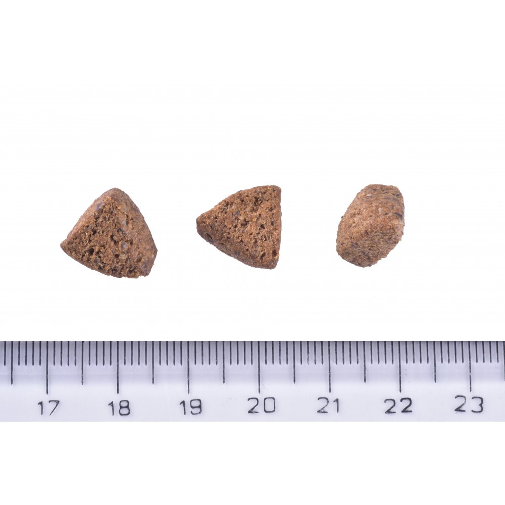 Аналітичний склад: сирий протеїн 27,0%, сирий жир 9,0%, вологість 10,0%, сира зола 5,5%, сира клітковина 9,5%, кальцій 1,2%, фосфор 0,8%, натрій 0,3%, омега-3 жирні кислоти 0,3%, омега-6 жирні кислоти 1,5%, EPA (20:5 n-3) 0,02%, DHA (22:6 n-3) 0,05%.