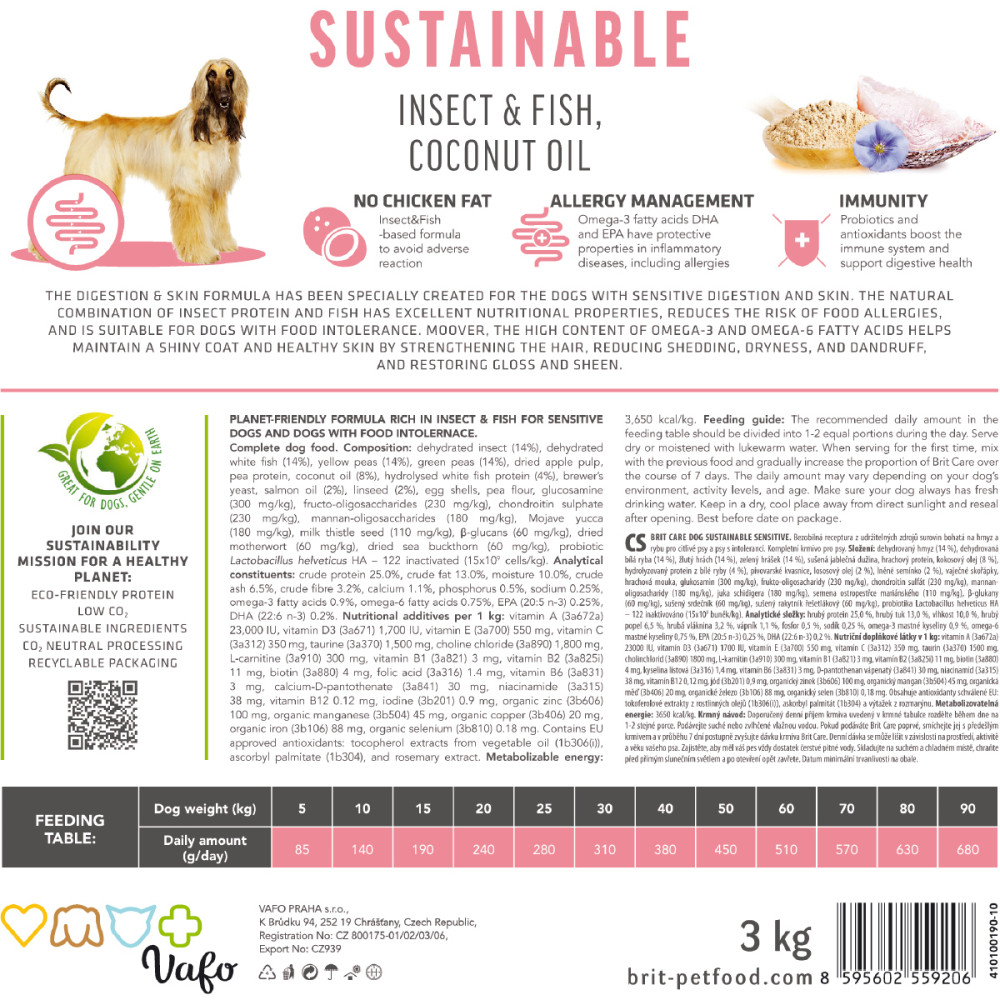 Поєднання білка комах і риби має чудові поживні властивості, знижує ризик харчової алергії та підходить для собак з харчовою непереносимістю. Виробництво білка комах має значно менше екологічне навантаження на довкілля порівняно зі виробництвом звичайного білка.