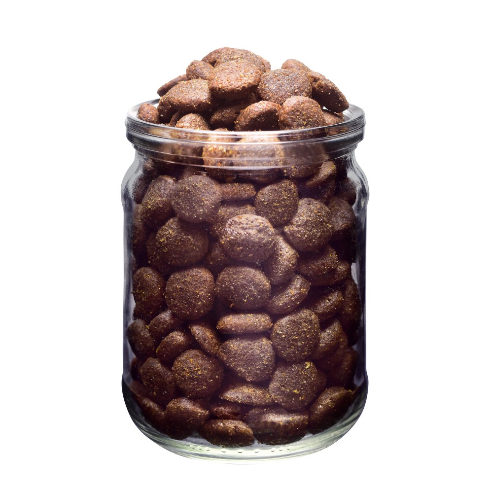 Склад: свіжа риба (40%), сушена курятина (20%), гарбуз (10%), курячий жир (насичений токоферолами), овес, гречана мука (4%), яблука, цільний буряк (2%), лососевий жир, пивні дріжджі, лляне насіння, куряча печінка, колаген, морські водорості, кормовий буряк (0,2%), петрушка (0,05%), розмарин, тим‘ян, календула, кульбаба, пробіотики, (ентерокок феціум 1x109 / Enterococcus faecium 1x109 CFU), аміноглюкоза 1,700 мг/кг, хондроїтин сульфат 1,300 мг/кг, фруктоолігосахариди 220 мг/кг, β-глюкани 200 мг/кг, маннанолігосахариди 180 мг/кг, екстракт юкки 150 мг/кг, екстракт зелених губчастих молюсків 100 мг/кг.