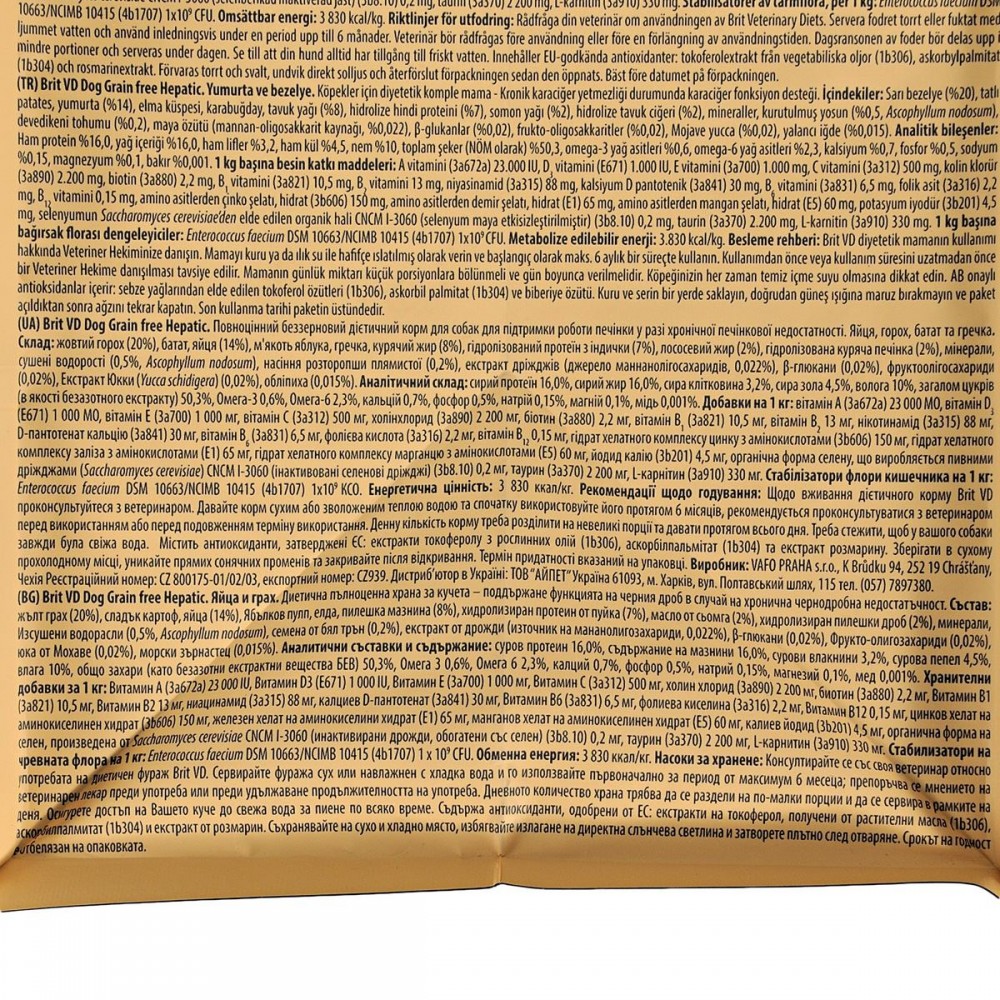 Початковий період годування: Використовуйте Brit VD Hepatics Dog протягом 6 місяців. Щоденну кількість корму слід розділити на декілька рівних порцій і давати протягом дня. Не годуйте собаку жодним іншим кормом для тварин або харчовими продуктами для людини і закусками. У випадку хронічної печінкової недостатності корм слід використовувати протягом усього життя.