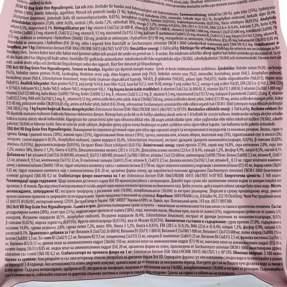 Підтримання дієти: У разі нетерпимості і/або алергії припиніть використання. Brit VD Hypoallergenic Dog може використовуватися необмежено довго або у якості провокаційного тесту на монобілкову дієту.