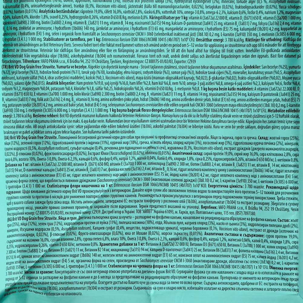 Brit GF Veterinary Diets Dog Struvite (яйце, індичка, горох и гречка) – повнораціонний ветеринарний сухий корм ветеринарна дієта для собак в період лікування та профілактики захворювань сечовивідних шляхів.