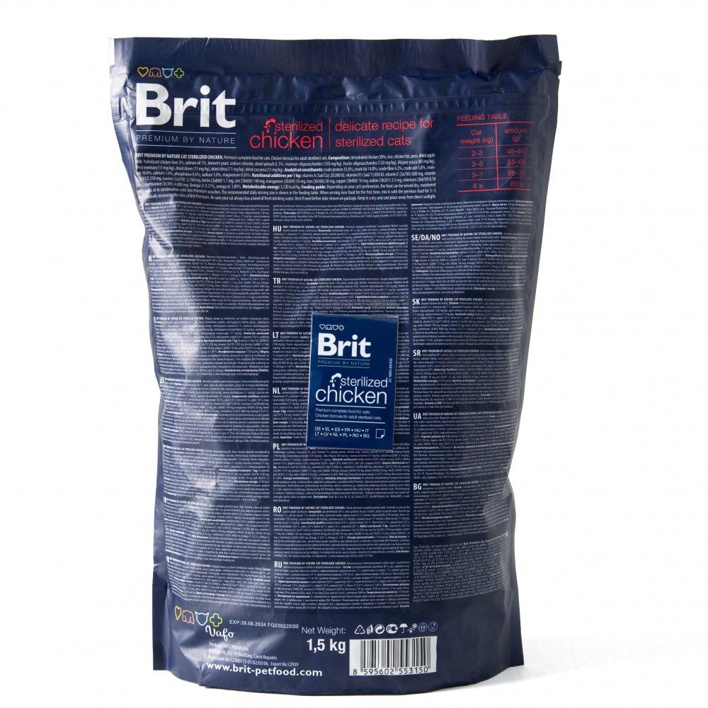 Повноцінний корм преміумкласу для дорослих стерилізованих котів. Смачний і апетитний корм з м’ясом курей і цінними натуральними інгредієнтами для щоденного здорового харчування вашого улюбленця.