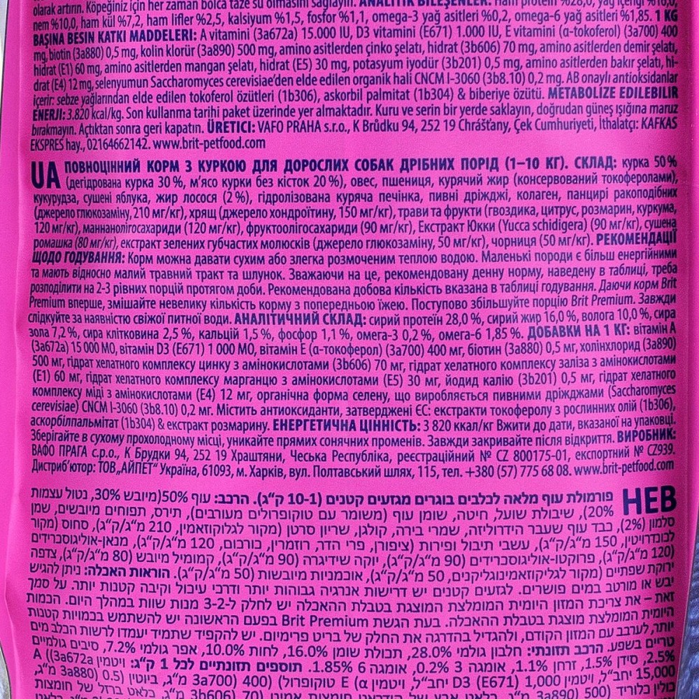 Brit Premium by Nature Adult S – досконала формула з курячим м’ясом для дорослих собак малих порід (1-10 кг).