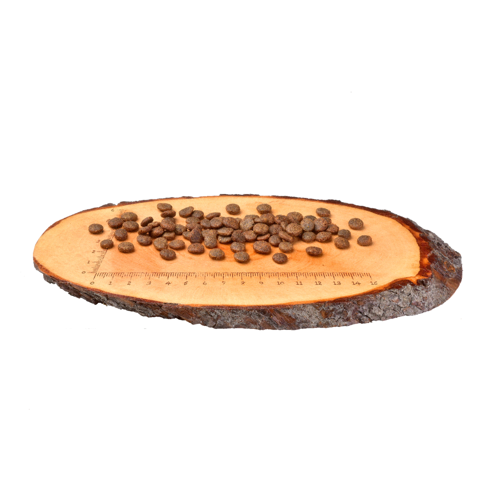 Аналітичний склад на 1 кг: сирий протеїн 34,0 %, вміст жиру 14,0 %, волога 10,0 %, сира зола 9,5 %, сира клітковина 3,5 %, кальцій 0,9 %, фосфор 0,8 %, натрій 1,2 %, магній 0,04 %, омега-3 0,8 %, омега-6 1,7 %, EPA (20:5 n-3) 0,01 %, DHA (22:6 n-3) 0,2 %.