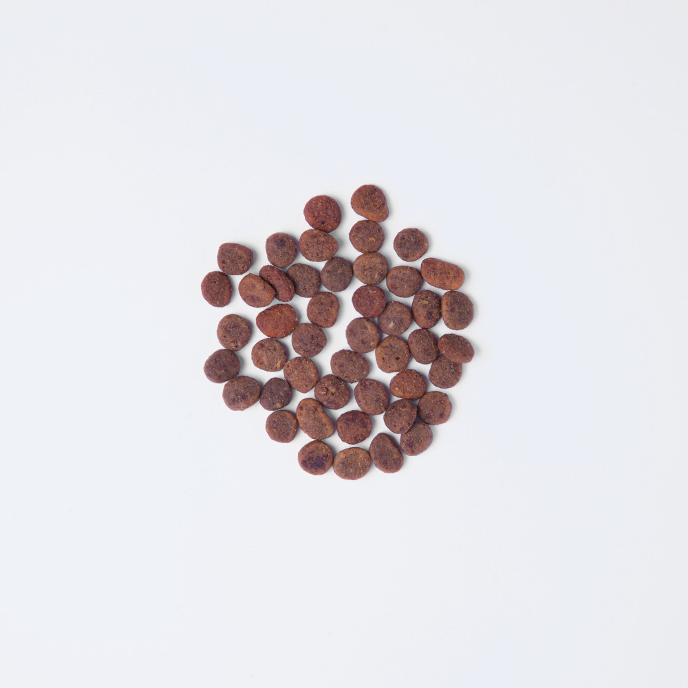Склад: свіже м'ясо індички (70%), гороховий протеїн, червона сочевиця, гречка (4%), натуральні ароматизатори, курячий жир, лососева олія (1%), хлорид натрію, хлорид калію, сушена ламінарія (Ascophyllum nodosum, 0,5%), протеїн з ряски (Lemna) (0,5%), горохова мука, сушена обліпиха (0,2%), сушений корінь імбирю (0,1%), сушена чорниця (0,1%), сушений розмарин (0,1%), сушена журавлина (vaccinium oxycoccos) (0,1%), сушений чебрець (0,1%), пивні дріжджі (джерело маннанолігосахаридів, 0,015%), корінь цикорію (джерело фруктоолігосахаридів, 0,015%), юка Мохаве (0,008%).