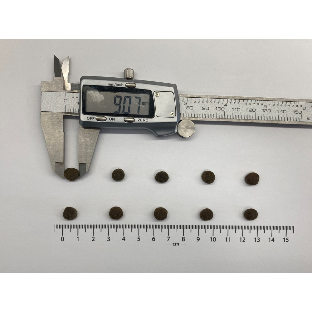Аналітичний склад: сирий протеїн 34,0%, сирий жир 13,0%, волога 10,0%, сира зола 9,5%, сира клітковина 4,0%, кальцій 1,1%, фосфор 0,8%, натрій 1,1%, магній 0,04 %, Омега-3 жирні кислоти 0,4%, Омега-6 жирні кислоти 1,5%, ЕПК (20:5 n-3) 0,15%, ДГК (22:6 n-3) 0,2%.
