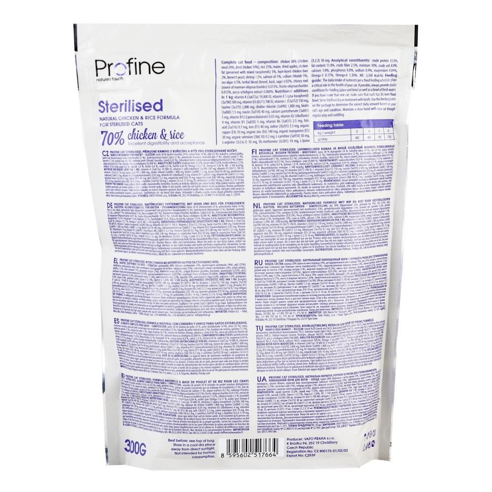 Сухий корм для стерилізованих котів Profine Cat Sterilised з куркою та рисом. Натуральна формула суперпреміум класу. Корм Profine відрізняється високим вмістом білка, джерелом якого служать курка, ягня і лосось.