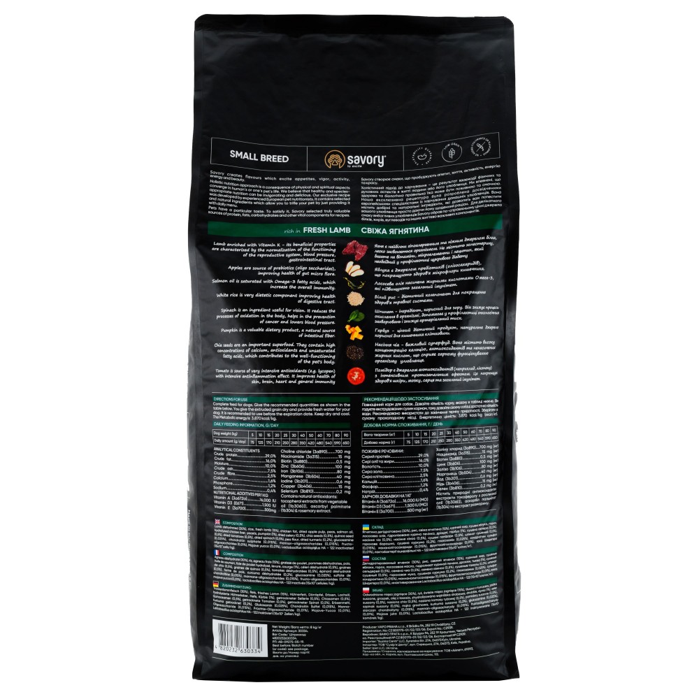 Корм класу холістик для дорослих собак малих порід вагою до 10 кг. Повнораціонний сухий корм для собак малих порід Savory пробудить у вашого улюбленця ту життєву енергію, про яку він навіть сам ще не знав.