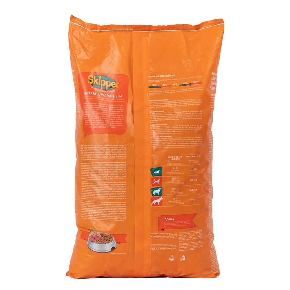 «Skipper з куркою та яловичиною» – повноцінний сухий корм для собак, створений з турботою та відповідальністю. Меню Skipper підтримує життєрадісність вашого улюбленця завдяки натуральним інгредієнтам і поєднанню білків, жирів, вітамінів і мінералів. Збалансований склад корму сприяє прекрасному вигляду шерсті, здоров’ю шкіри, міцності зубів і кісток.