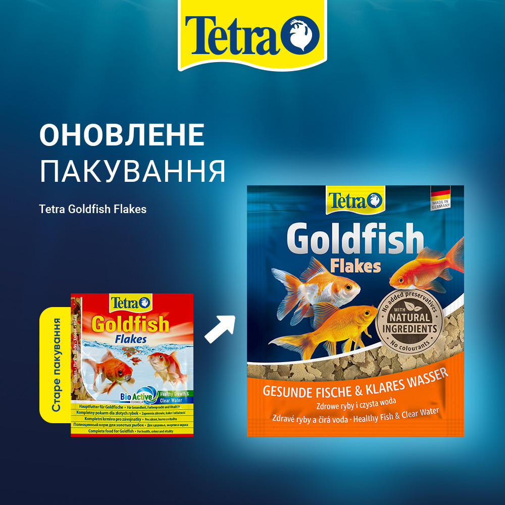 Збалансований повнораціонний корм для золотих рибок з унікальною сумішшю протеїнів для міцних, здорових і життєво важливих рибок.