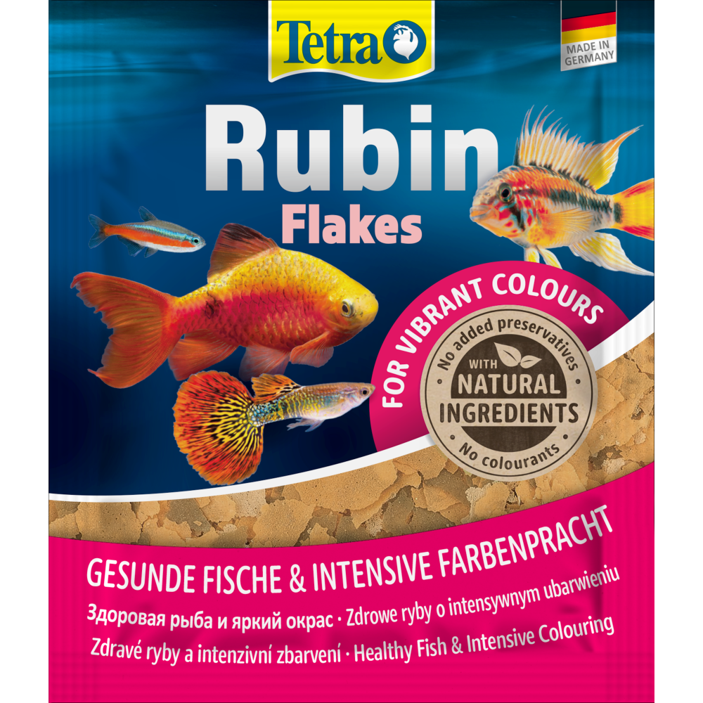 - Високий вміст натуральних підсилювачів кольору, які забезпечують гарне забарвлення всіх червоних, помаранчевих і жовтих декоративних риб.