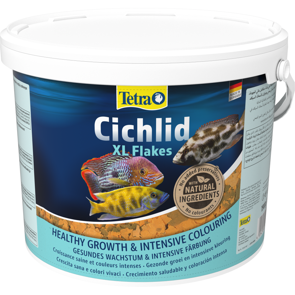 - Повільно тонучі великі пластівці для великих цихлід, які харчуються в усіх шарах води.