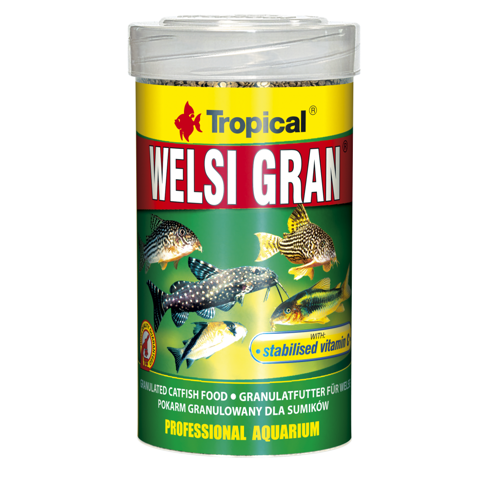 Рецептура Welsi Gran містить точно збалансовані інгредієнти тваринного і рослинного походження, які покривають харчові потреби риб, сприятливо впливають на їх правильний ріст і розвиток. Відповідним чином складений набір вітамінів і мікроелементів забезпечує чудову кондицію риб і зміцнює їх імунологічну стійкість.