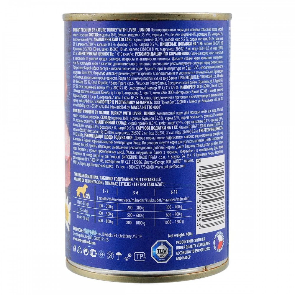 Склад: індичка 36%, індичий бульйон 35,5%, курка 22%, індича печінка 4%, ромашка 1%, мінерали 1%, лососеве масло 0,5%.