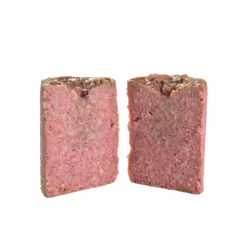 Склад: ягнятина 36%, бульйон з ягнятами 35,5%, курка 22%, гречка 4 %, яблука 1%, мінерали 1%, лососеве масло 0,5%.