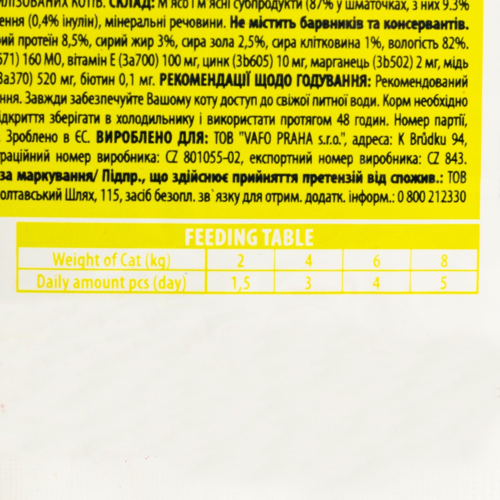 - Смачний соус. Ніжний соус ідеально підкреслює смак м'ясних шматочків, створюючи справжню гастрономічну насолоду для вашого улюбленця.