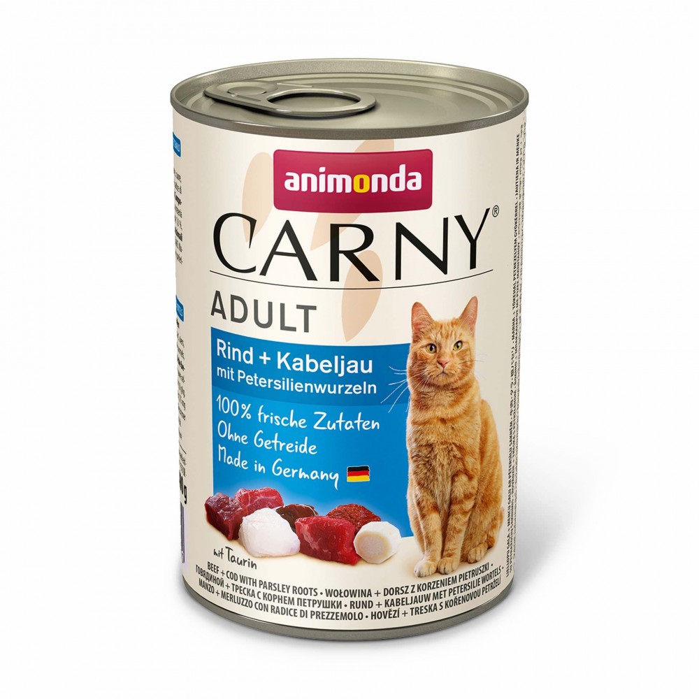 В процесі виготовлення свіжі м’ясні інгредієнти піддаються лагідній обробці, зберігаючи свій смак і користь. Кожен шматочок корму дарує неповторну насолоду від прийому їжі. Carny Adult Beef + Cod with Parsley Roots не містить зерна, сої та цукру.