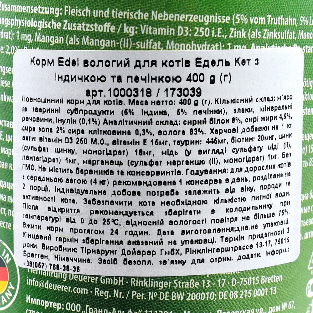 Рекомендації з годування: на середню кішку (до 4 кг) із середньою активністю - 1 консерви на день.