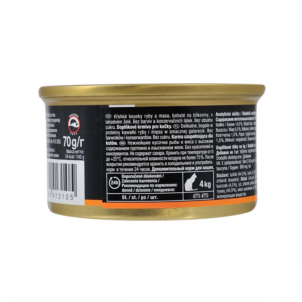 Консерви для котів Shiny Cat тунець і курка – делікатесний вологий корм, готовий до споживання. Виготовлений з високоякісного м’яса тунця і курки. Не містить штучних барвників, підсилювачів смаку, консервантів і ГМО.