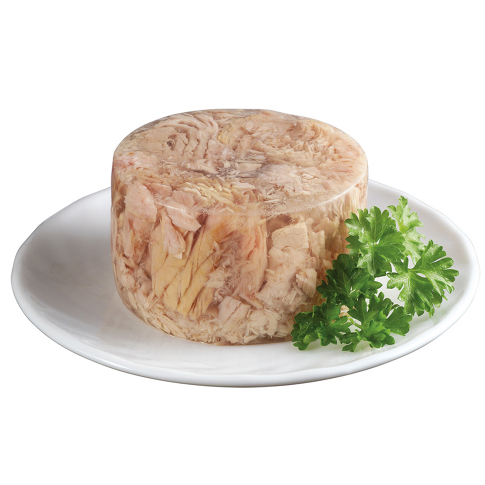 Склад: тунець (44,9%), курка (4,5%), рис, хлорид калію.