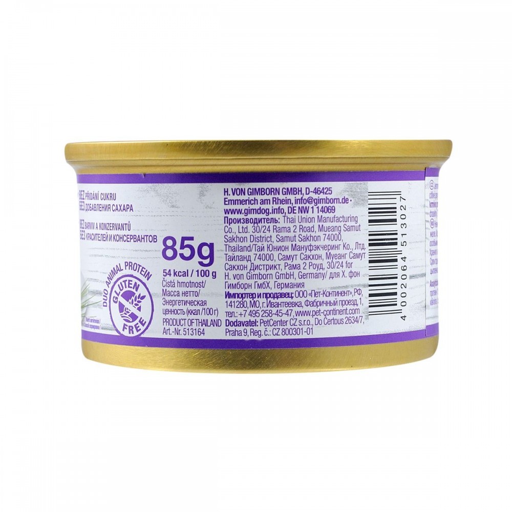 Консерви для GimDog Pure Delight з куркою і тунцем для собак дрібних порід – це делікатесний корм не містить пшениці, глютену і сої, тому ідеально підходить для собак з чутливим травленням і схильних до алергії.