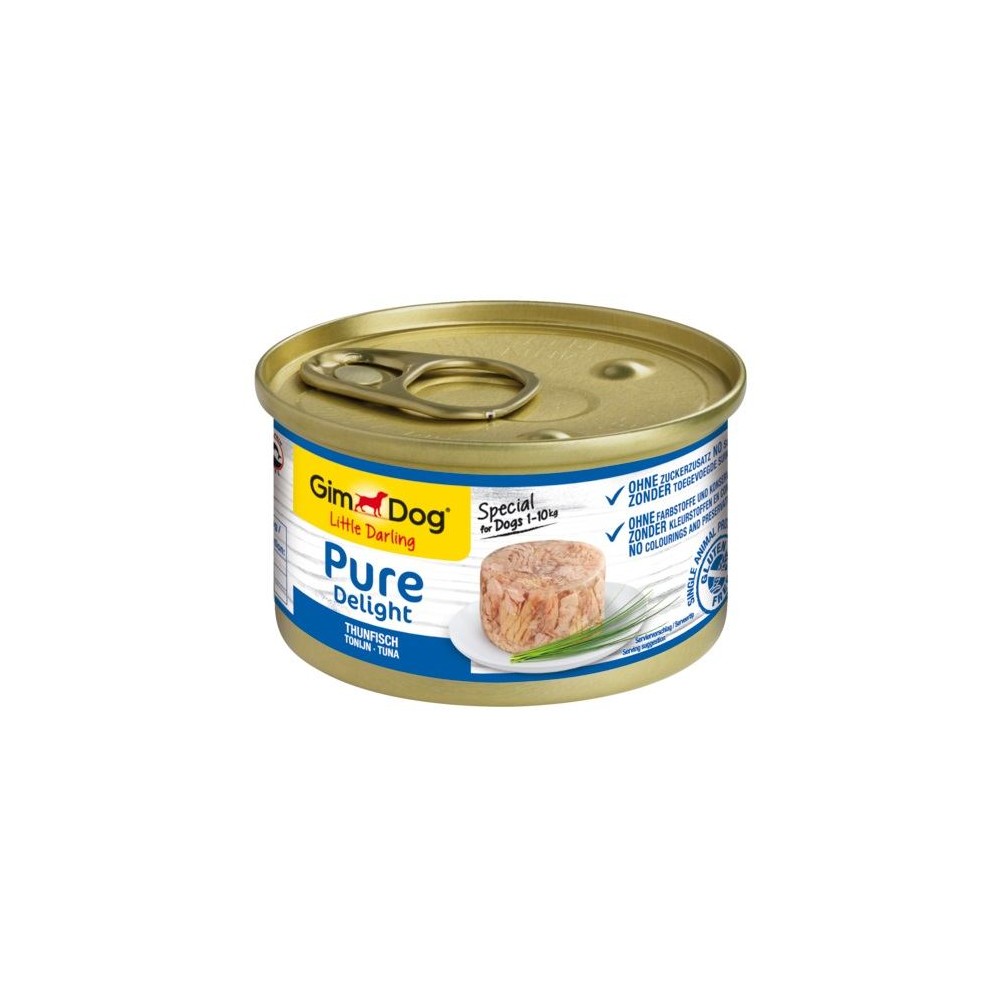 Консерви для GimDog Pure Delight з тунцем для собак дрібних порід – це делікатесний корм не містить пшениці, глютену і сої, тому ідеально підходить для собак з чутливим травленням і схильних до алергії.
