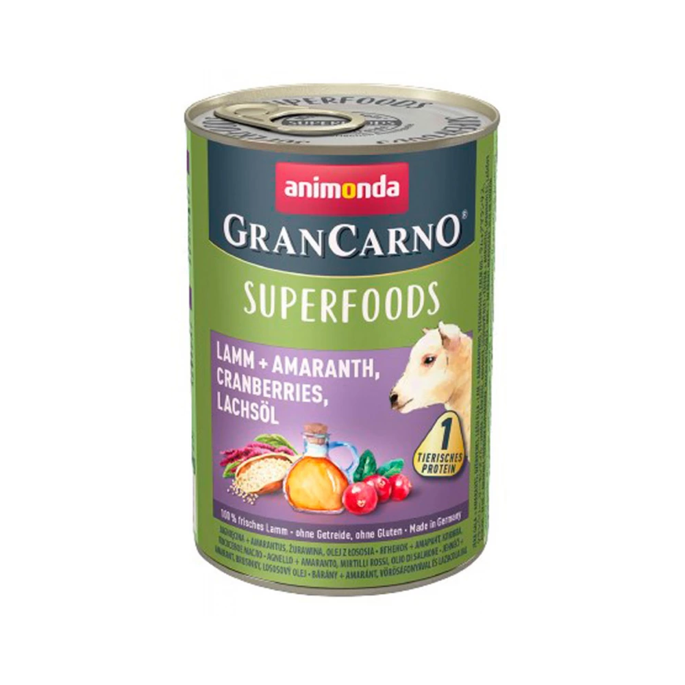 GranCarno Superfoods Ягня + Амарант, Журавлина, Лососева Олія виготовлений виключно з апетитних інгредієнтів ягнятини.