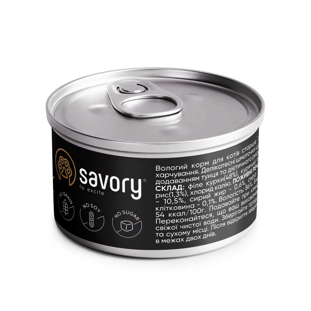 Вологий корм для котів старше 1 року, додаткове харчування. Делікатесні шматочки цільного курячого філе з додаванням соковитої корейки тунця та дієтичного рису. Без барвників. Без консервантів. Без сої. Без ГМО.