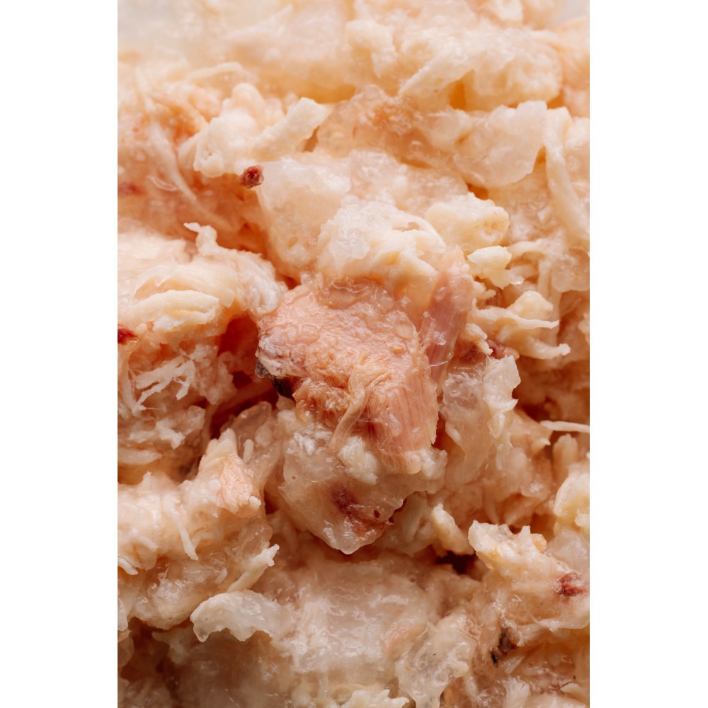 Склад: куряче філе – 48.00 %, цільна корейка тунця – 4.00 %, рис – 1.30 %, желеутворювачі – 1.10 %, курячий бульйон – 45.60 % (усього – 100.00 % складу).