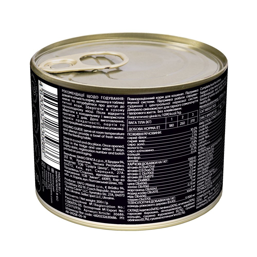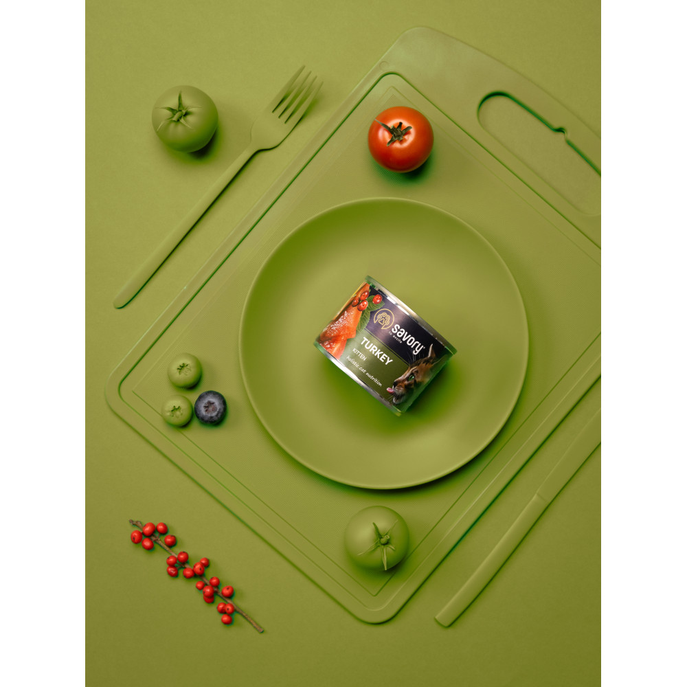 Повнораціонний вологий корм з індичкою для кошенят. Ексклюзивна рецептура корму була розроблена досвідченими європейськими спеціалістами з харчування домашніх улюбленців. Використовуючи холістичний підхід, вдалося створити біологічно відповідний, здоровий раціон для котів, який є корисним і смачним настільки, що лапки оближеш. Поєднання добірних натуральних інгредієнтів дає можливість піклуватися про здоров’я чотирилапого, а вишуканий смак – дарувати йому насолоду від щоденного споживання корму Savory.