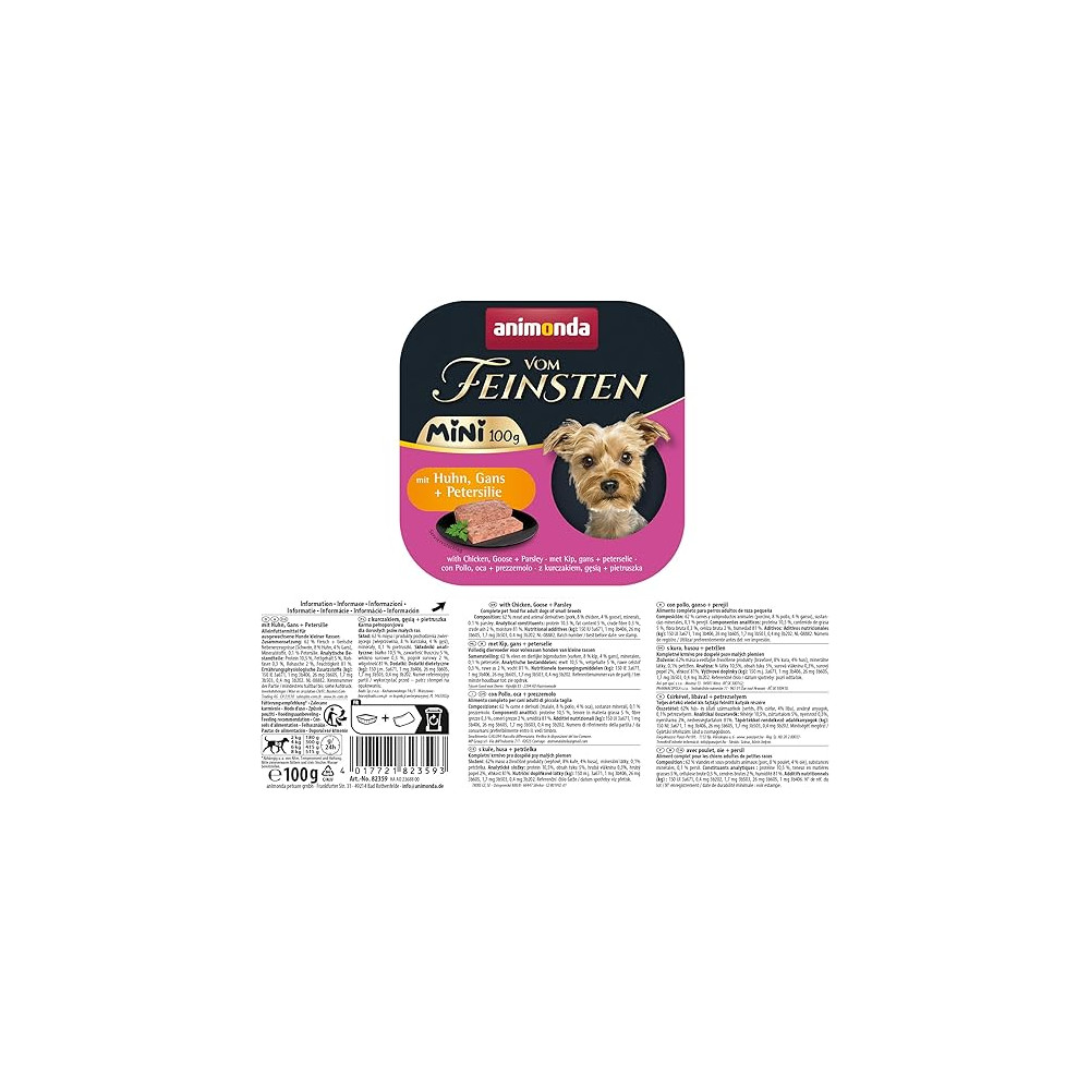 Побалуйте свого мініатюрного гурмана вишуканим вологим кормом Animonda Vom Feinsten Adult Mini з куркою, гускою та петрушкою! Цей корм створений спеціально для дорослих собак дрібних порід, пропонуючи таким песикам неперевершений смак та повноцінне харчування в зручних порційних упаковках.