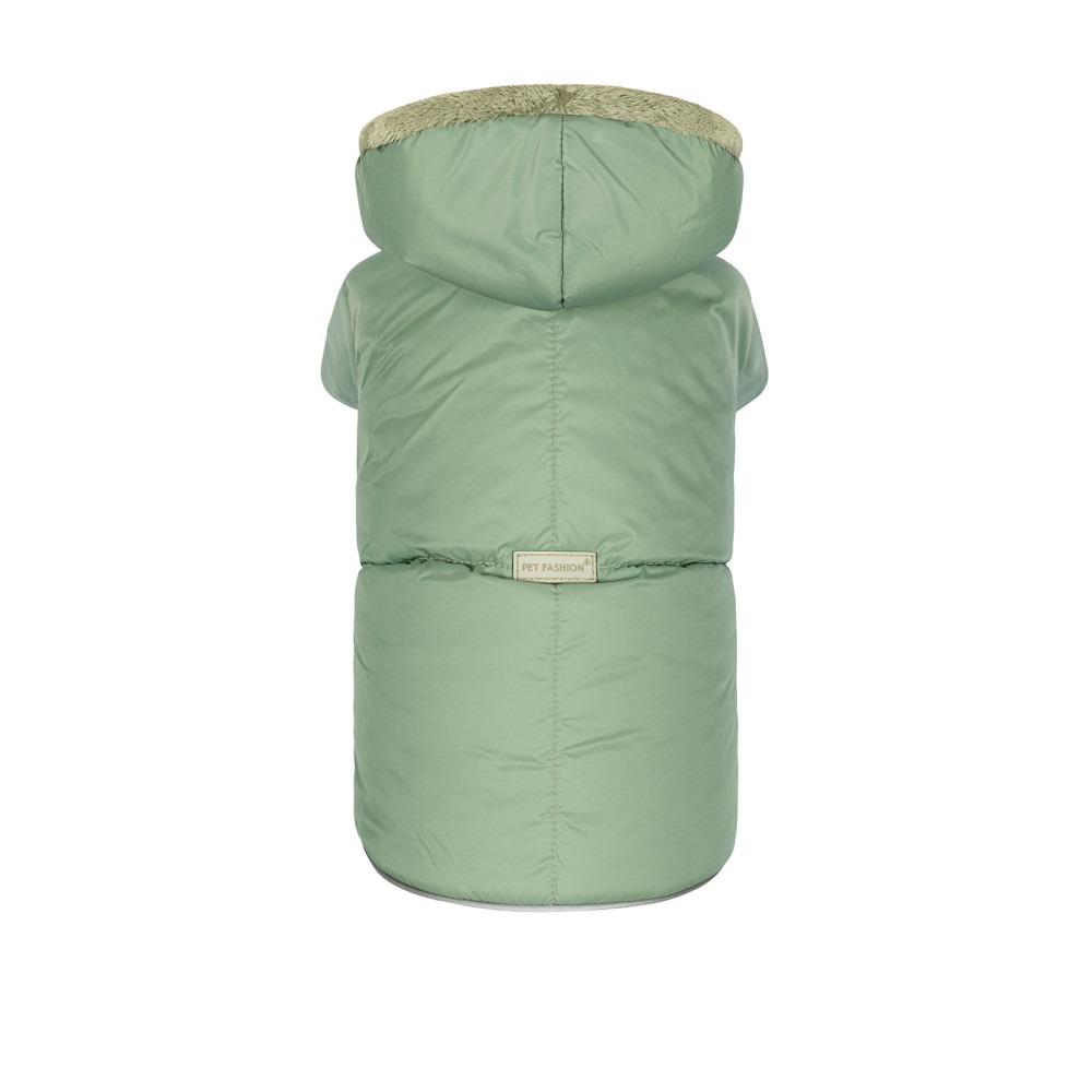 Зручненький і теплий костюм-трансформер оливкового кольору підходить і хвостатим хлопчикам, і дівчаткам. Застібка-блискавка дозволяє одним рухом перетворювати зимовий костюм на демісезонну курточку зі світловідбивною смугою на подолі. Спинка курточки і каптур утеплені штучним хутром. Каптур за потреби можна зафіксувати на спині кнопкою. В основі каптура є отвір для повідця.