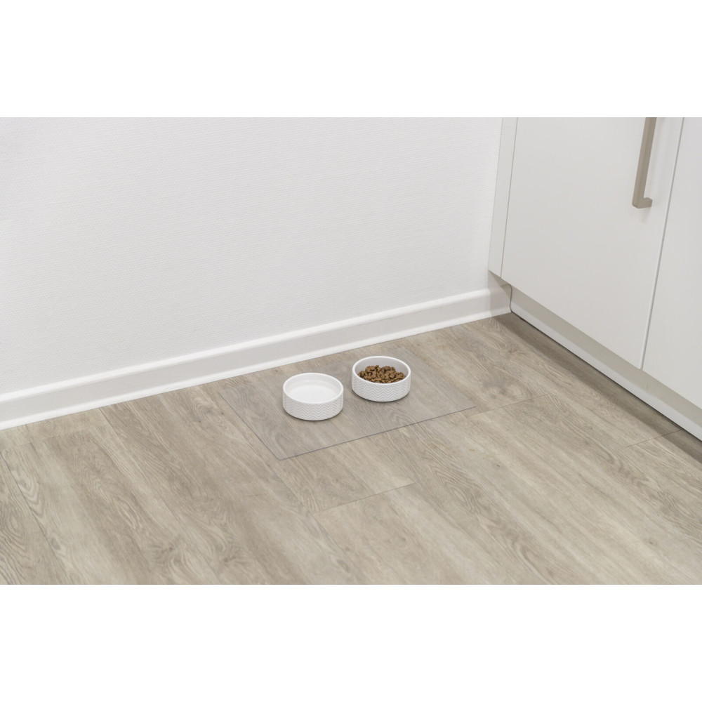 Прозорий килимок Trixie під миски подбає про чистото обіднього місця вашого улюбленця, не порушуючи гармонію в інтер’єрі. Виготовлений з ПВХ, килимок неслизький та дуже легко очищується.
