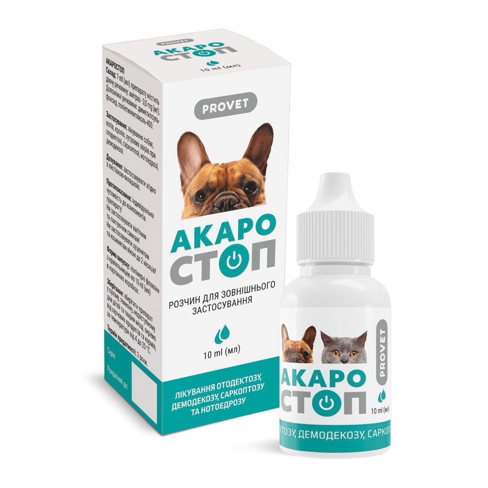 Препарат ефективний при отодектозі, саркоптозі, нотоедрозі, демодекозі. До складу препарату входить амітраз - акарицид групи амідинів, активний щодо саркоптоїдних кліщів (Оtodektes sрр., Рsoroptes, Notoedres cati), а також Demodex sрр. Амітраз діє контактно, порушуючи октопамінрецептори нервової системи кліщів, що викликає параліч та загибель паразитів, негативно діє на репродуктивні органи самок кліщів, зменшуючи продукування яєць та їхню життєздатність.