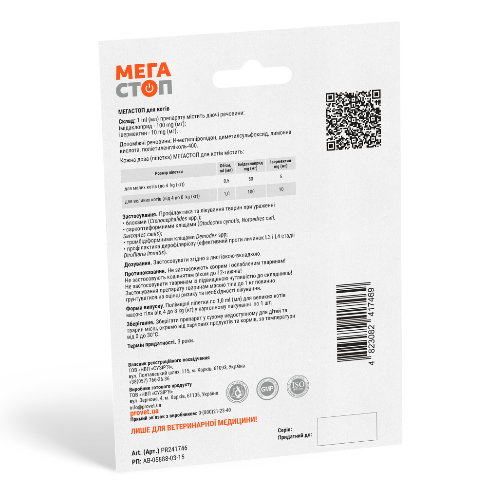 | Направленість | Засоби від внутрішніх і зовнішніх паразитів |