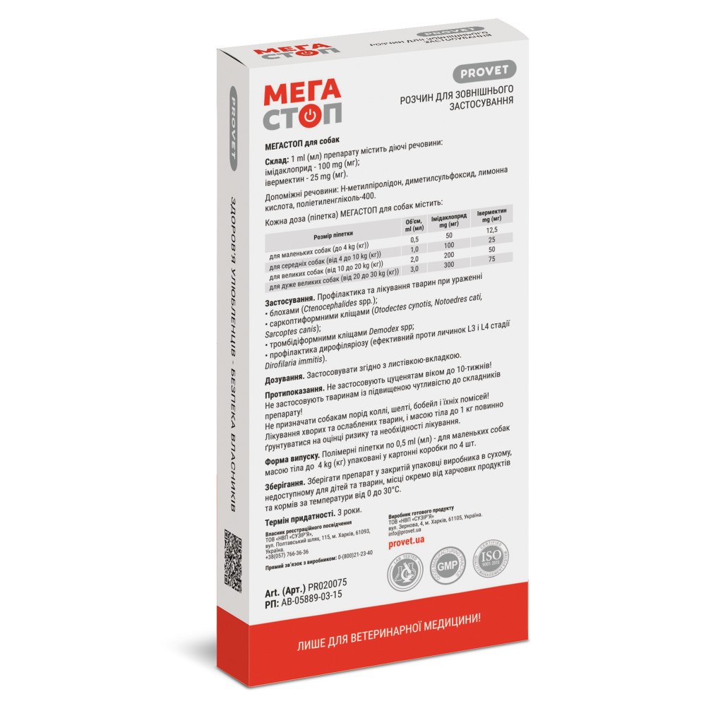 Форма випуску: полімерні піпетки по 0,5 мл, упаковані у картонну коробку по 4 штуки. РП № АВ-5889-03-15.