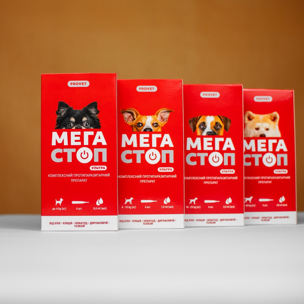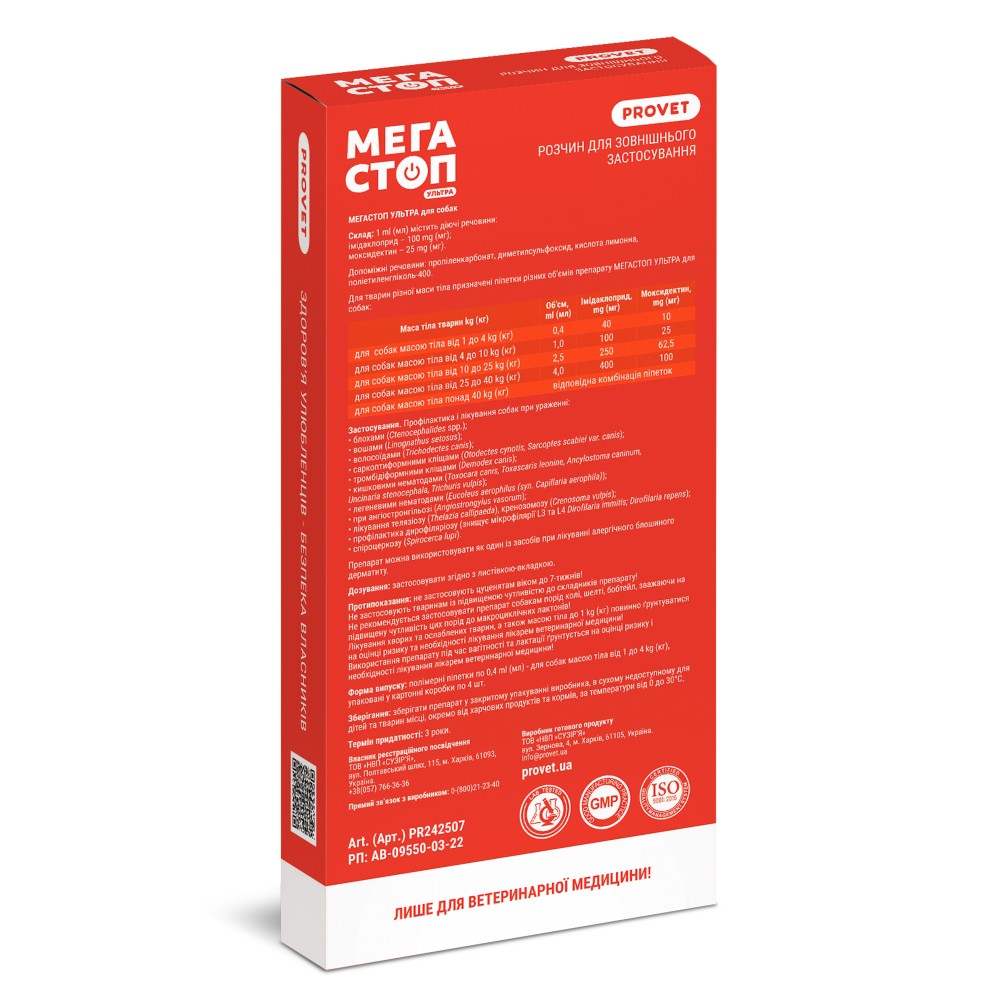 Великим собакам масою тіла понад 25 kg (кг) вміст піпетки наносити на шкіру у 3-4 точки вздовж хребта, від холки до хвоста.
