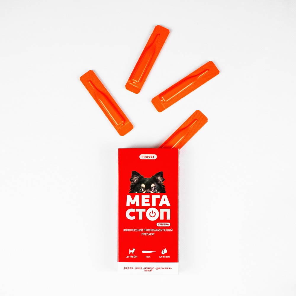 - 0,4 ml (мл) - для собак з масою тіла від 1 до 4 kg (кг);