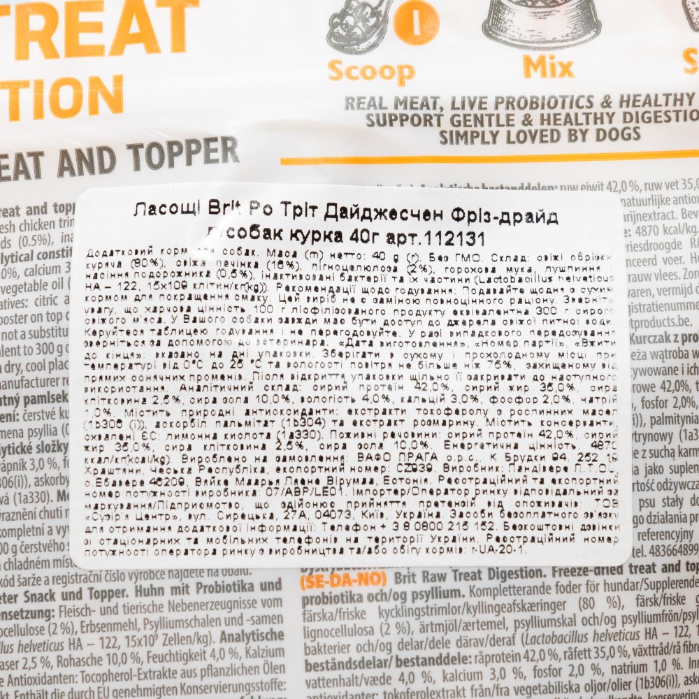 Brit Raw Treat freeze-dried Digestion – ласощі з неперевершеним смаком і користю свіжого м'яса.