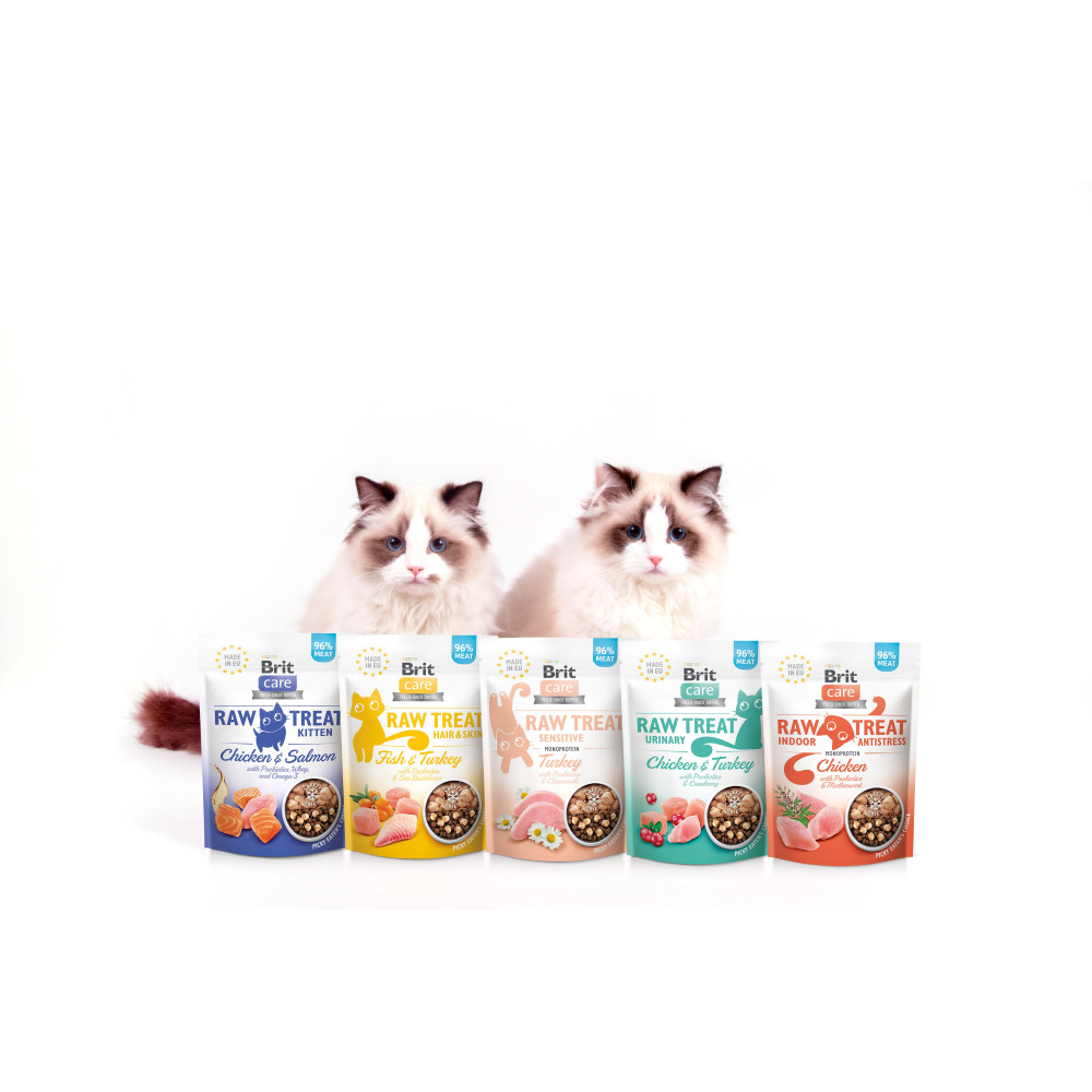Brit Raw Treat можна використовувати, як смачні ласощі, що їх так люблять коти, а також, як універсальні добавки, що урізноманітнюють щоденну їжу вихованців, надаючи їй додаткового смаку та поживних речовин, та роблячи час прийому їжі цікавим і корисним для здоров'я.